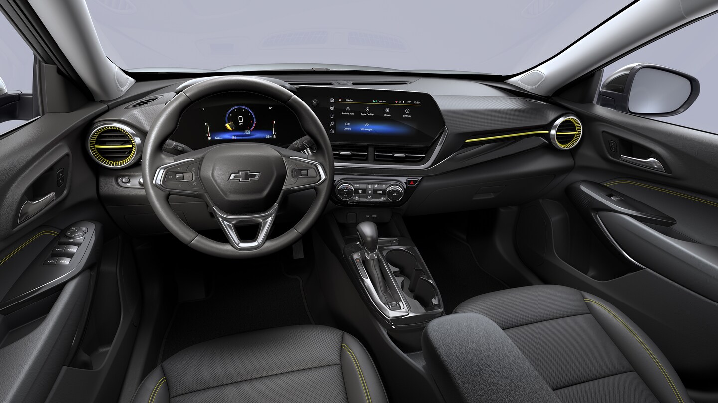 Inside, the Chevy Trax offers seating for five passengers with available features like heated front seats, power-adjustable driver's seat, and automatic climate control in higher trims. Technology highlights include the Chevrolet Infotainment 3 system with either an 8-inch or 11-inch touchscreen display, wireless Apple CarPlay and Android Auto compatibility, and available wireless charging. The cabin provides ample cargo space with a 60/40 split-folding rear seat for added versatility.